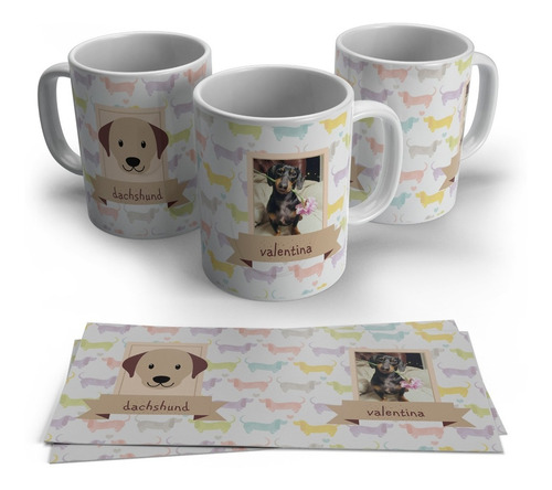 – A imagem representa a caneca vista de três ângulos diferentes e a arte aberta para uma visão geral.