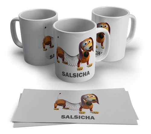 – A imagem representa a caneca vista de três ângulos diferentes e a arte aberta para uma visão geral.