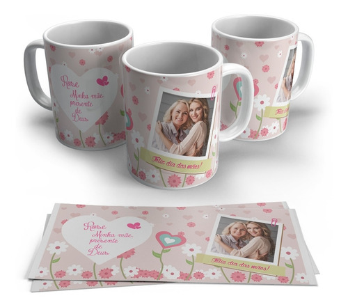 – A imagem representa a caneca vista de três ângulos diferentes e a arte aberta para uma visão geral.
