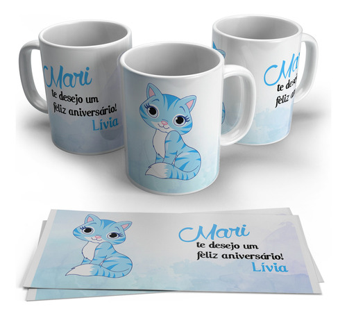 CANECA PERSONALIZADA GATO FELIZ ANIVERSÁRIO