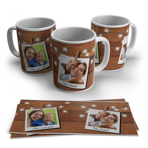 Caneca Personalizada Plástica 2 Fotos Pisca-pisca Natal