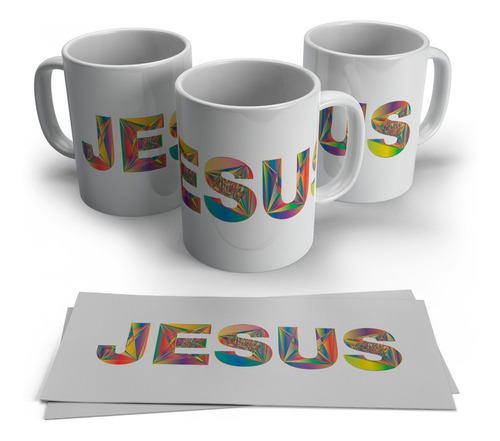 – A imagem representa a caneca vista de três ângulos diferentes e a arte aberta para uma visão geral.