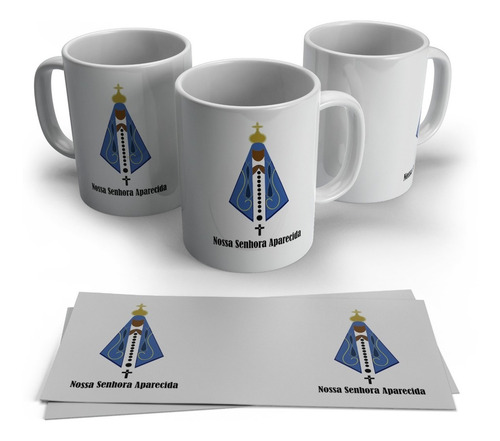 – A imagem representa a caneca vista de três ângulos diferentes e a arte aberta para uma visão geral.