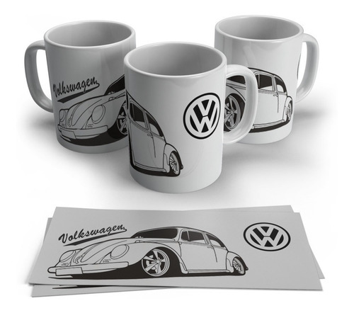 – A imagem representa a caneca vista de três ângulos diferentes e a arte aberta para uma visão geral.