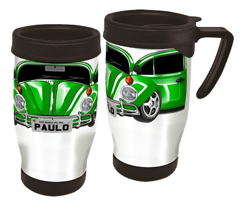 Copo Caneca Térmica Carros Fusca Colorido Branco