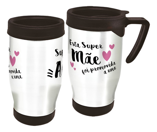 Copo térmico com tampa, ideal para conservar sua bebida gelada ou quente por mais tempo.