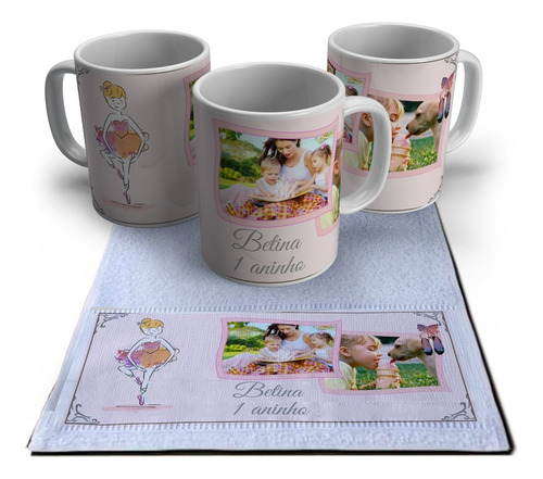 Kit Escolar Caneca E Toalha Personalizados Bailarina