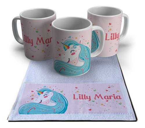 Kit Escolar Personalizado Caneca E Toalha Unicórnio
